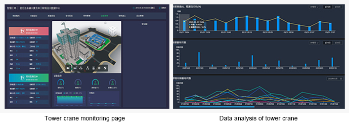 The tower crane safety monitoring and early warning system is installed on the tower crane to realize the functions of single tower crane operation early warning, group tower operation collision real-time early warning and hoisting whole process early warning, and accumulate big data of the tower crane team to assist in the analysis of tower crane work efficiency.